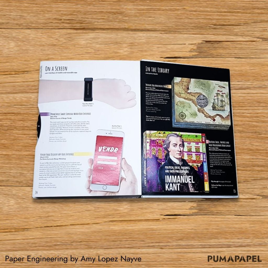 Popfolio compiles my college industrial design works in pop-up form. From a rocking chair that rocks to a clock that ticks, a bag that opens and closes, and an app that scrolls—every piece in this book offers an interactive paper representation of its real-life counterpart, capturing experiences in paper.